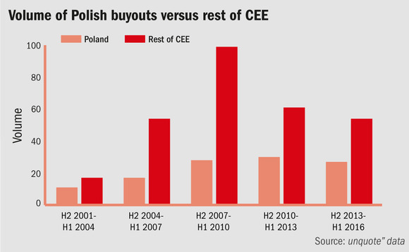The story is even more impressive when Poland is compared to its CEE peers. The 10 years to H1 2016 saw the Polish buyout industry remain stable even as the rest of CEE saw nearly half of its buyout volume evaporate. In fact, during these last 10 years, Poland was not only home to nearly four out of every 10 buyouts in the region, but also accounted for 55% more acquisitions than the next largest CEE country (Turkey, with 55 deals).
