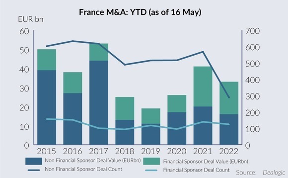 The French M&A pipeline may well struggle to remain dynamic amidst adverse macroeconomic conditions heightened by the war in Ukraine, but France is seeing a resilient flow of sponsor-led deals, local dealmakers said.
