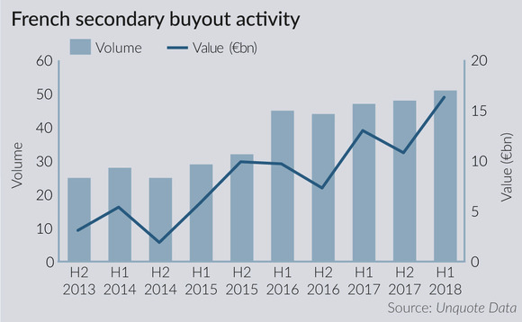The French football team may have had a fantastic summer on the football pitches of Russia, but the country's private equity industry has also reached lofty heights: according to figures compiled by Unquote Data, there were 114 buyouts in H1 2018, the most in any half since H1 2007. Their aggregate enterprise value of €19.9bn was the largest seen since H2 2006.
