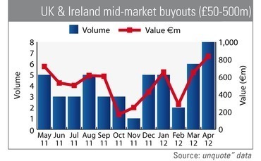 This follows on from strong first quarter performance, with January and March each recording over £650m worth of deals. However, it remains to be seen whether this momentum can be maintained. Europe's buyout market was performing strongly last year but suffered in the second half as financing dried up and the Eurozone crisis accelerated.