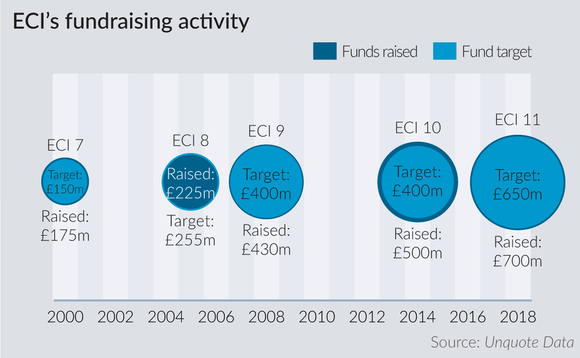 ECI 11 is 40% larger than its predecessor, which closed on £500m in 2014. That vehicle was also raised in a short amount of time, having been launched in April that year with a target of £400m. ECI 10 is now deployed at around 70%, with enough left to finance three deals to be announced over the summer, and a number of bolt-ons for portfolio companies, Unquote understands. The fund's predecessor, ECI 9, closed in December 2008, raising a total of £437m.