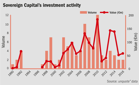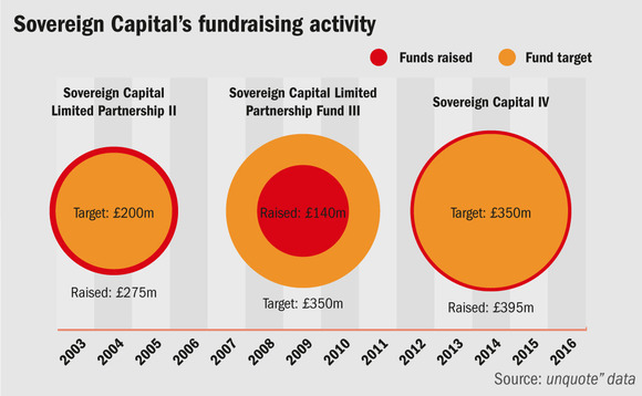 Given this investment pace, Sovereign has raised three funds in the last 11 years. Sovereign Capital Limited Partnership (SCLP) II reached a final close in May 2005 at £275m and is fully committed, while its successor SCLP III closed in July 2009 on £140m and is also fully committed. The Sovereign Capital IV fund raised £395m by final close in August 2014 (with a target of £350m) and is roughly 30% committed.