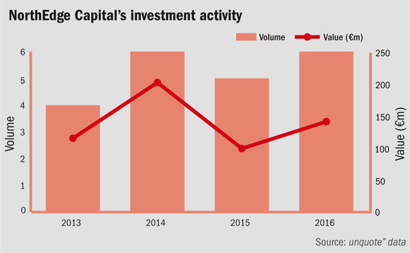 The GP has two funds under its belt. NorthEdge's Fund I reached a first close on £125m in July 2012 and a final close on £225m in 2013. This fund is fully invested and committed through 15 investments. NorthEdge Fund II closed on £300m in March 2016 above its £275m target and there have been three investments so far – Belfield, ITC and Abbey Logistics Group.