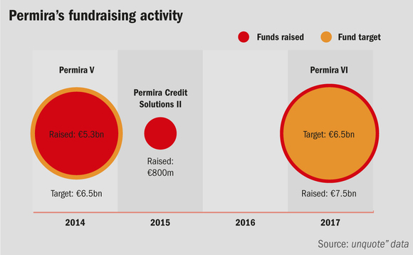 Permira VI was launched in February 2016, with an initial target of €6.5bn, and held a first close in July of that year on €6.3bn. The fund closed on €7.5bn (at the hard-cap of €7.25bn plus GP commitments). The ticket range is €250m-600m in companies with an EV of between €500m-3bn.