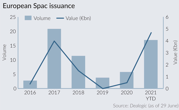 But while European blank-cheque issuance is expected to remain strong into Q3, advisers still maintain that Spacs are no easy sell, however luminous the "ESG here" sign. More than ever, Spac IPO investors are "screening for structure", one banker working on such listings said. "ESG or otherwise, Spacs need bright sponsors and appealing [promote] structures," he added.