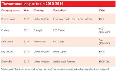 In terms of sectors, the industrial and consumer segments are traditionally home to the lion's share of Europe's turnaround dealflow. In 2010, for example, these sectors accounted for all turnaround deals in Europe. That year, the industrial sector saw 12 such transactions while the consumer sector accounted for another seven. In 2014, however, the industrial and consumer sectors reported just five and two deals, respectively.