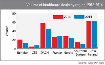 In terms of deal types, buyouts not only accounted for half the deal volume in the sub-segment with 20 transactions last year, but more than four in 10 buyouts in the sector involved healthcare providers. Early-stage deals, meanwhile, staged a strong return with five deals (an all-time high) within the healthcare provider sub-sector in 2014, after failing to record a single transaction in 2013. Three of these deals took place in the UK/Ireland region and the remaining two took place in the Netherlands and Sweden.