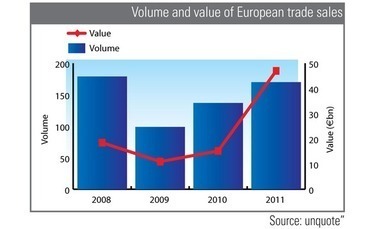 Trade sales continue to be the most common exit route in 2011 and increased by almost €30bn in value, while secondary buyouts are stalling, reflecting the tough economic conditions of the past year. Anneken Tappe reports