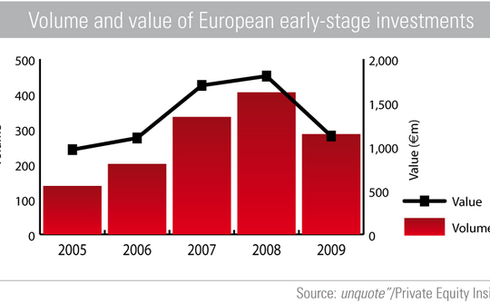According to unquote" data, early-stage investment in Western Europe fell 38% between 2008 and 2009 to €1.12bn. Clearly investors were being increasingly cautious. However, Sodhani believes recession can be a great time for venture investors.