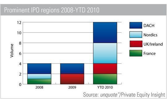 The past couple of years are best left forgotten for private equity, and flotations are certainly no exception. unquote" recorded only five IPOs in 2008, amounting to a measly €508m return for private equity firms. 2009 saw a timid improvement with seven deals worth €1.6bn, but IPOs still accounted for only 3% of all exits as opposed to 10% in 2007.